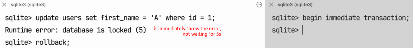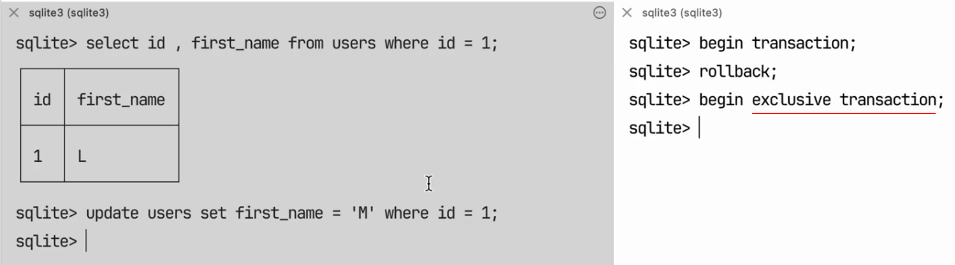 Transaction Modes: deferred, exclusive, immediate