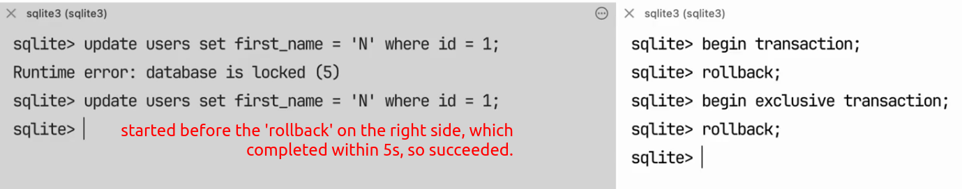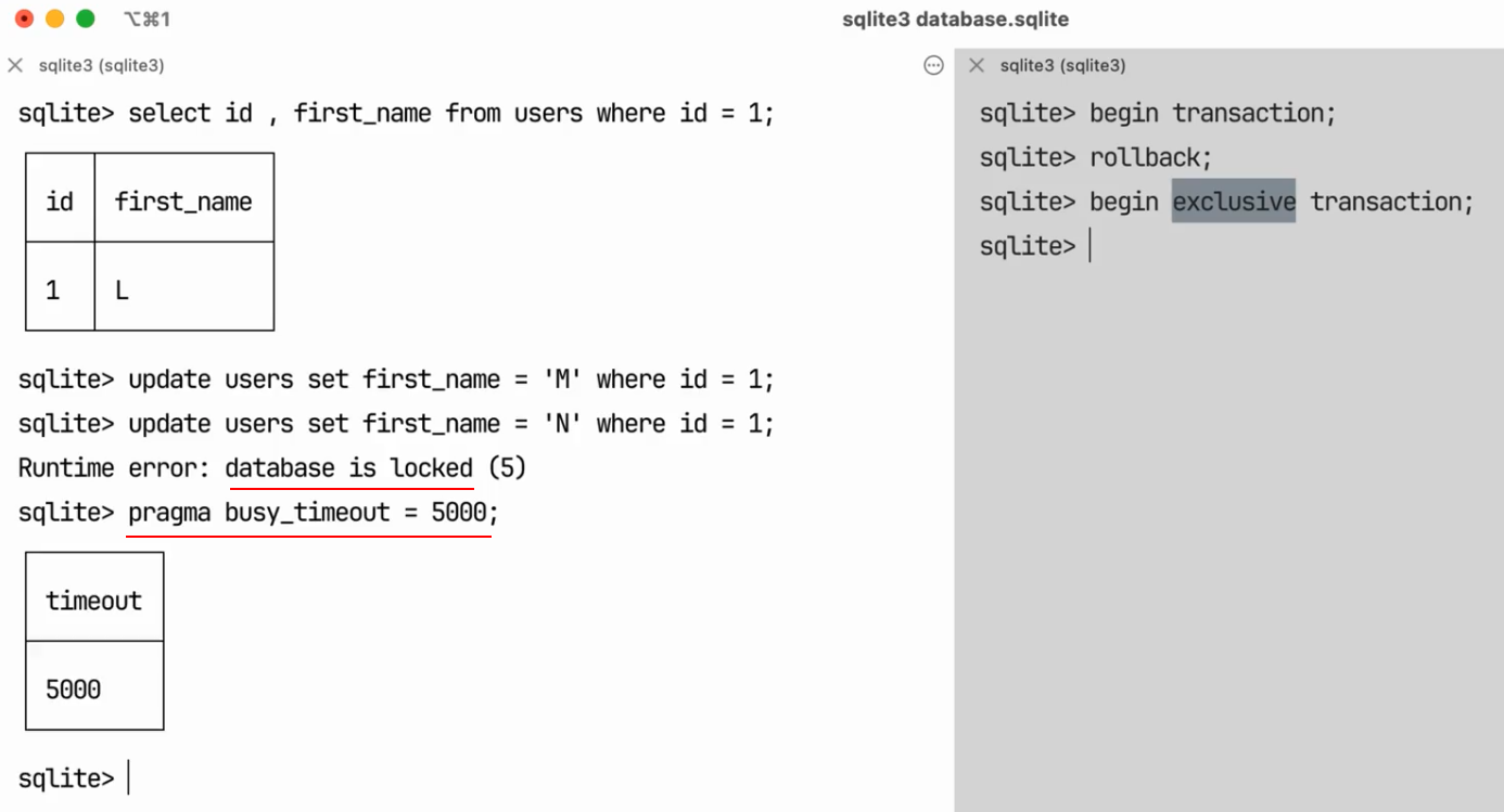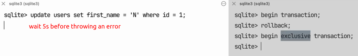 5. Exclusive Lock: The lock owner can write to the database. Only one writer can hold this lock.