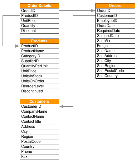 Notice that Order Details are always part of an order and that they relate the Order to a Product — they are a join table. Join tables are always a sign of a data relationship, indicating shared information between two other records.