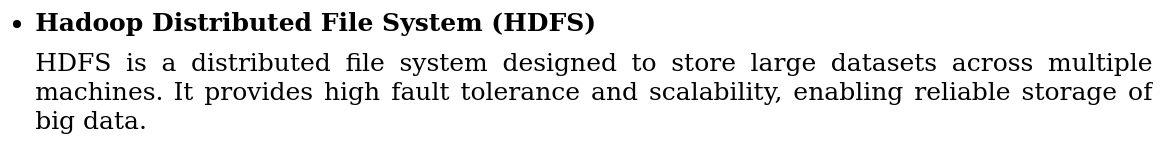 Hadoop is an open-source framework designed for distributed storage and processing of large datasets across clusters of computers. It provides a scalable and reliable platform that enables organizations to store, manage, and analyze vast amounts of structured and unstructured data.