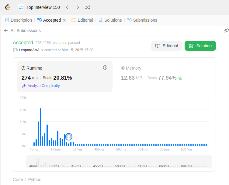 from collections import Counter class Solution(object): def minWindow(self, s, t): """ :type s: str :type t: str :rtype: str """ if not t or not s: return '' t_counter = Counter(t) # Count the frequency of characters in t current_counter = Counter() left = 0 min_len = float("inf") min_window = "" required_chars = len(t_counter) # Number of unique characters in t formed_chars = 0 # Number of unique chracters in the window that match t for right, char in enumerate(s): current_counter[char] += 1 if current_counter[char] == t_counter[char]: formed_chars += 1 # Try to shrink the window from the left while it still contains all characters of t while formed_chars == required_chars: window_len = right - left + 1 if window_len < min_len: min_len = window_len min_window = s[left:right + 1] # Remove the leftmost character from the window current_counter[s[left]] -= 1 if s[left] in t_counter and current_counter[s[left]] < t_counter[s[left]]: formed_chars -= 1 left += 1 return min_window # Return the minimum window found, or "" if no valid window exists