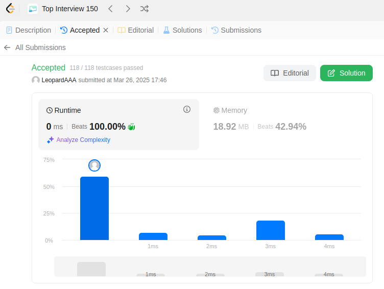 # Definition for a binary tree node. # class TreeNode: # def __init__(self, val=0, left=None, right=None): # self.val = val # self.left = left # self.right = right class Solution: def hasPathSum(self, root: Optional[TreeNode], targetSum: int) -> bool: if not root: return False if root.val == targetSum and not root.left and not root.right: return True elif root.left and not root.right: return self.hasPathSum(root.left, targetSum - root.val) elif root.right and not root.left: return self.hasPathSum(root.right, targetSum - root.val) elif root.left and root.right: left_found = self.hasPathSum(root.left, targetSum - root.val) return left_found if left_found else self.hasPathSum(root.right, targetSum - root.val) else: return False