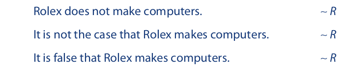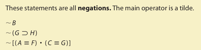 Let us now use the logical operators to translate additional English statements. The tilde symbol is used to translate any negated simple proposition: