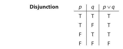 Turning now to the definition of the wedge operator (disjunction), the truth table is as follows: