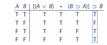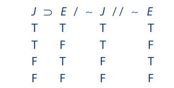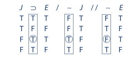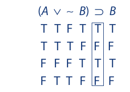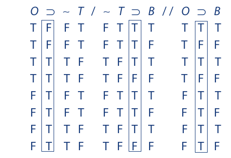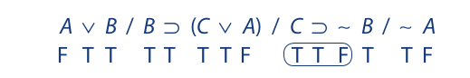 Extending the truth values of A and B to the premises, we obtain the following result: