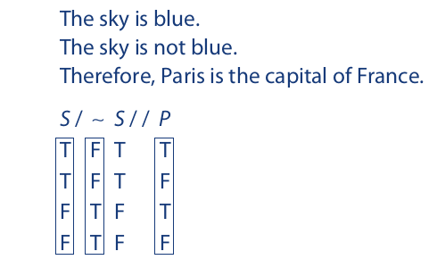 Truth tables provide a convenient illustration of the fact that any argument having inconsistent premises is valid regardless of what its conclusion may be, and any argument having a tautologous conclusion is valid regardless of what its premises may be. Example: