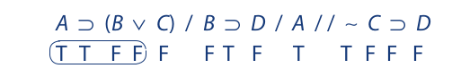 From the conclusion we can now derive the truth values of C and D, which are then transferred to the first two premises: