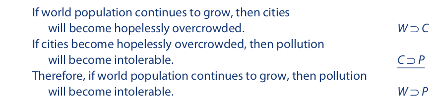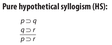 The next valid argument form we consider is pure hypothetical syllogism. It consists of two premises and one conclusion, all of which are hypothetical (conditional) statements, and is defined as follows: