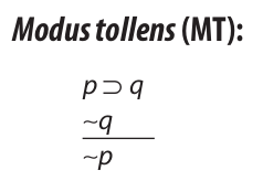 Closely associated with modus ponens is modus tollens (“denying mode”). Modus tollens is a valid argument form consisting of one conditional premise, a second premise that denies the consequent of the conditional premise, and a conclusion that denies the antecedent. It is defined as follows: