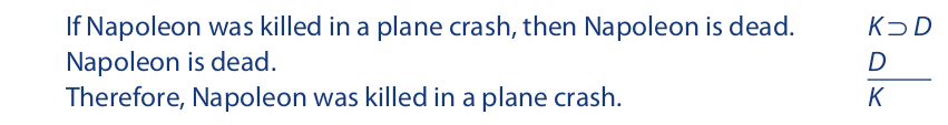 However, this result does not extend to invalid argument forms. Consider, for example, affirming the consequent:
