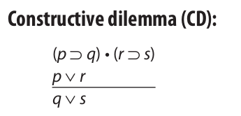 Some dilemmas, however, do not allow for the possibility of escaping between the horns. Consider the following constructive dilemma: