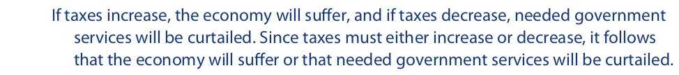 It is easy to escape between the horns of this dilemma by arguing that taxes could be kept as they are, in which case they would neither increase nor decrease.