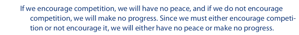 Since the disjunctive premise of this dilemma is a tautology, it cannot be proven false. This leaves the strategy of grasping the dilemma by the horns, which may be done by proving either of the conditional statements in the conjunctive premise false. One debater might want to attack the first conditional and argue that competition and peace can coexist, while another might want to attack the second and argue that progress can be achieved through some means other than encouraging competition.