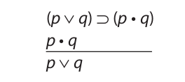 The wedge symbol is used to translate “or” and “unless.” A previous chapter explained that “unless” is equivalent in meaning to “if not.” This equivalence holds in propositional logic as well, but in propositional logic it is usually simpler to equate “unless” with “or.” For example, the statement “You won’t graduate unless you pass freshman English” is equivalent to “Either you pass freshman English or you won’t graduate” and also to “If you don’t pass freshman English, then you won’t graduate.” As the next section demonstrates, the wedge symbol has the meaning of “and/or”—that is, “or” in the inclusive sense. Although “or” and “unless” are sometimes used in an exclusive sense, the wedge is usually used to translate them as well.