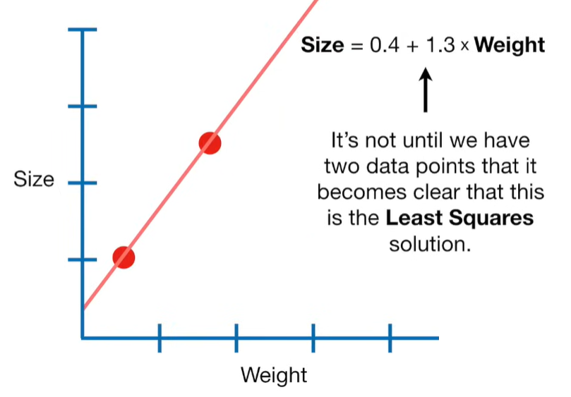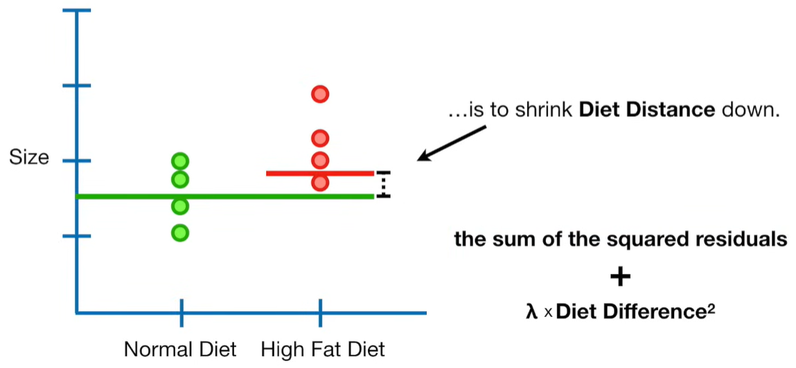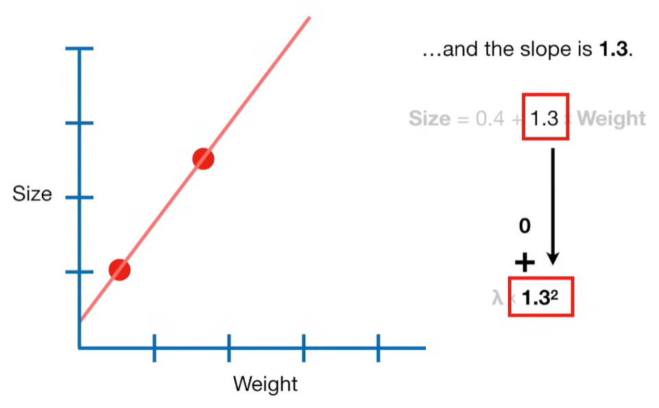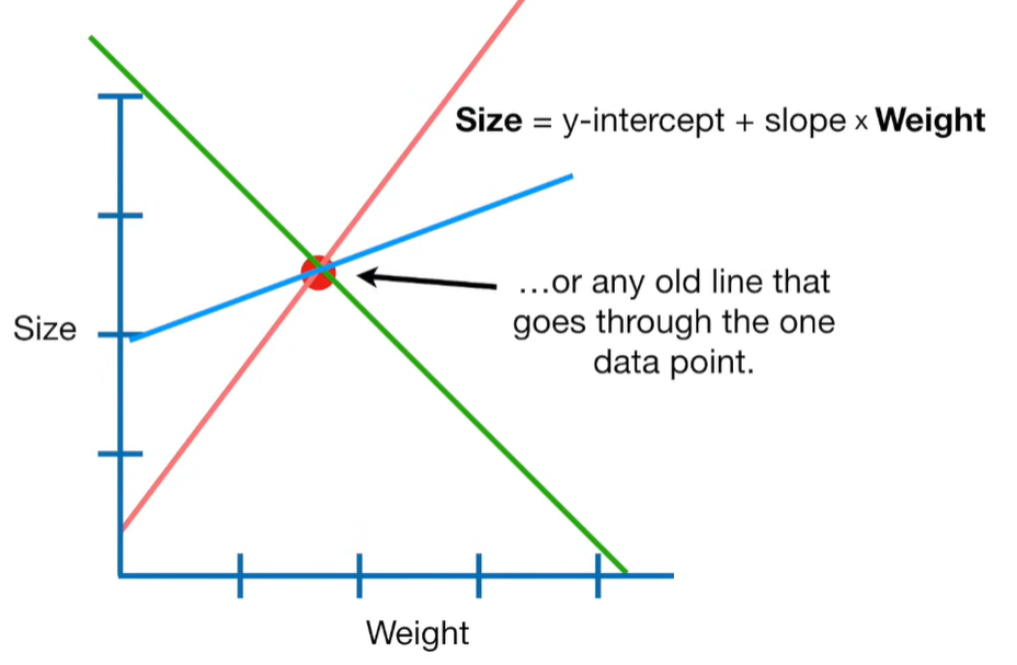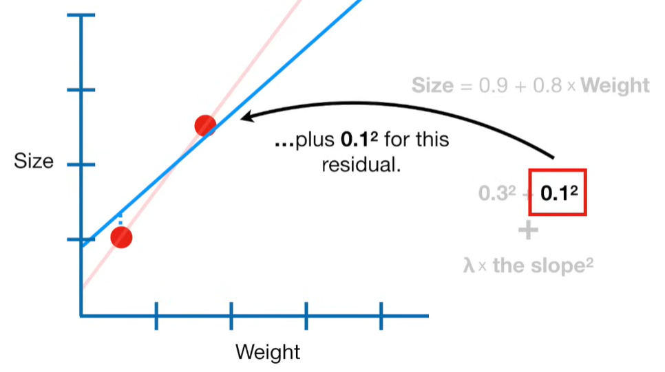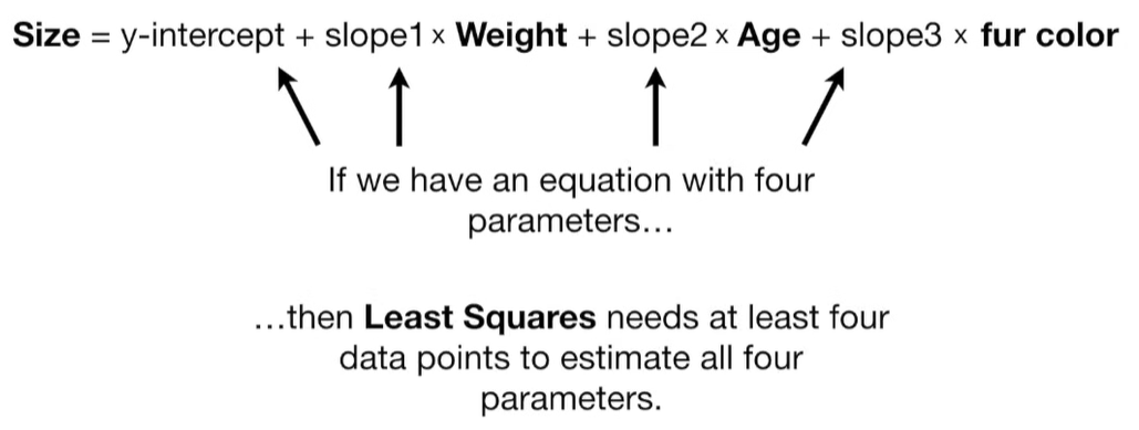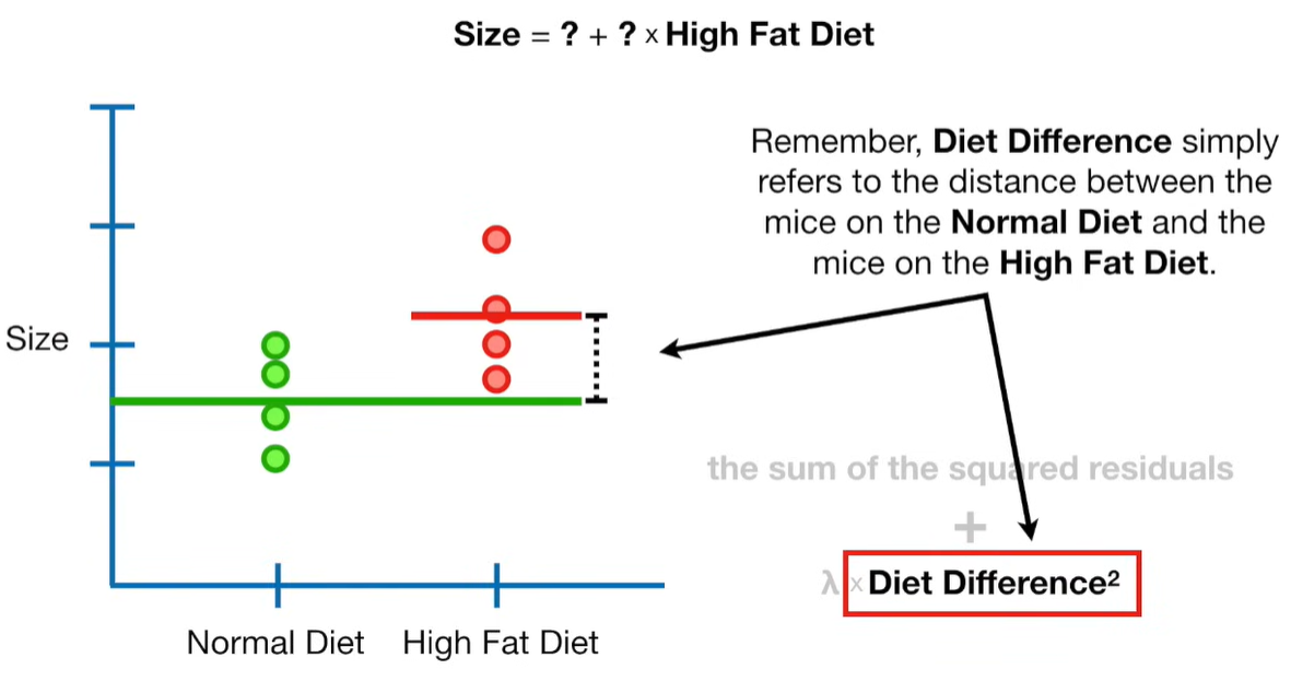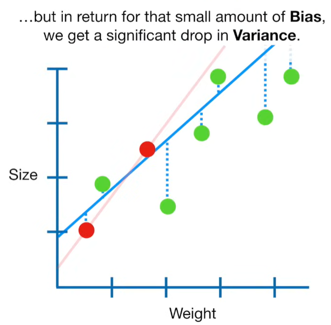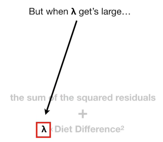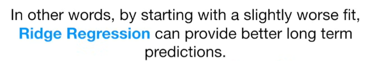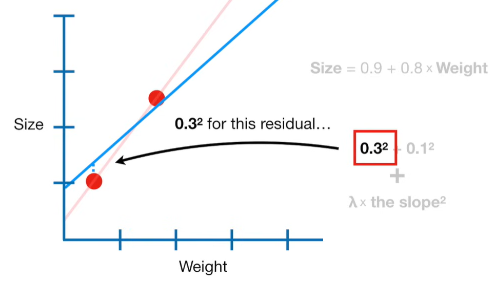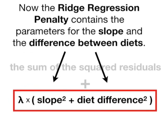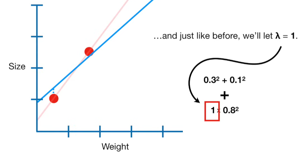 A lot of people ask about 15:34 and how we are supposed to do Cross Validation with only one data point. At this point I was just trying to keep the example simple and if, in practice, you don't have enough data for cross validation then you can't fit a line with ridge regression. However, much more common is that you might have 500 variables but only 400 observations - in this case you have enough data for cross validation and can fit a line with Ridge Regression, but since there are more variables than observations, you can't do ordinary least squares.