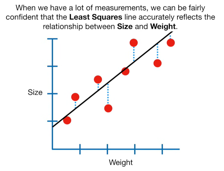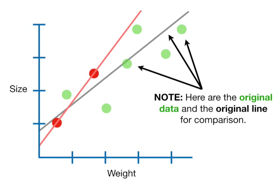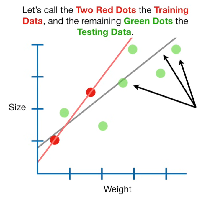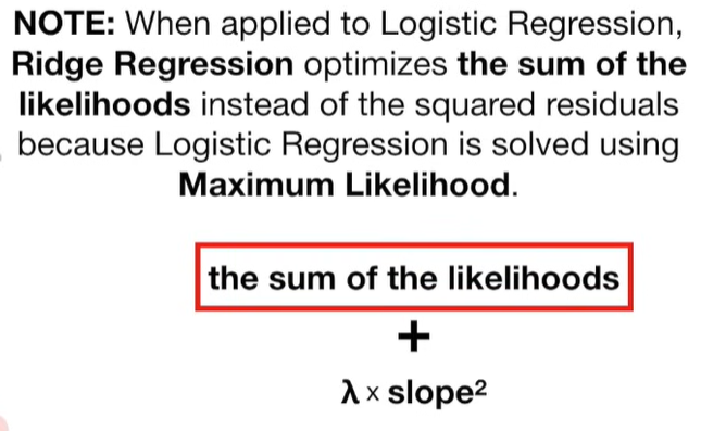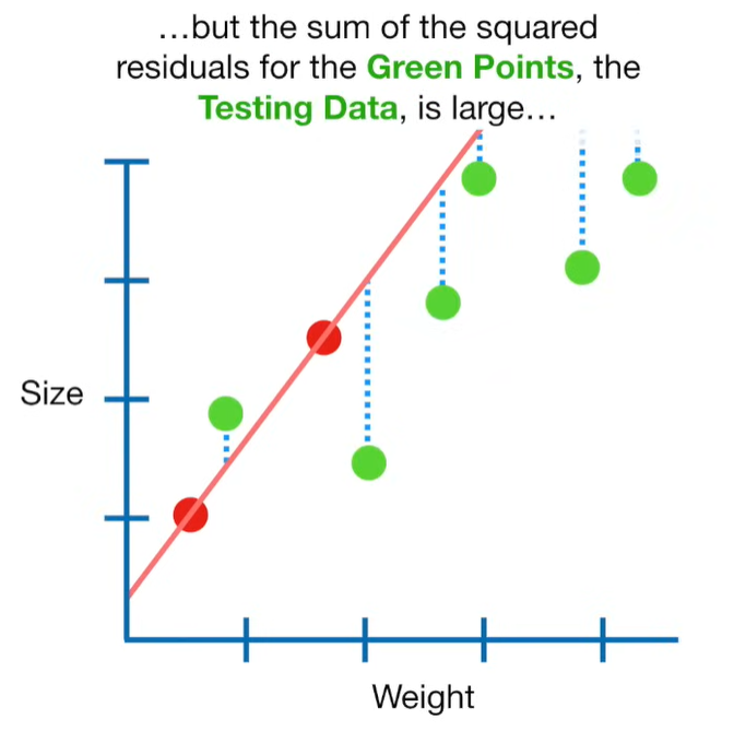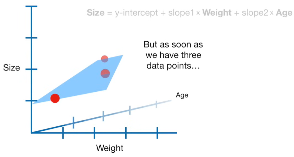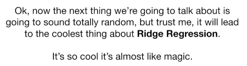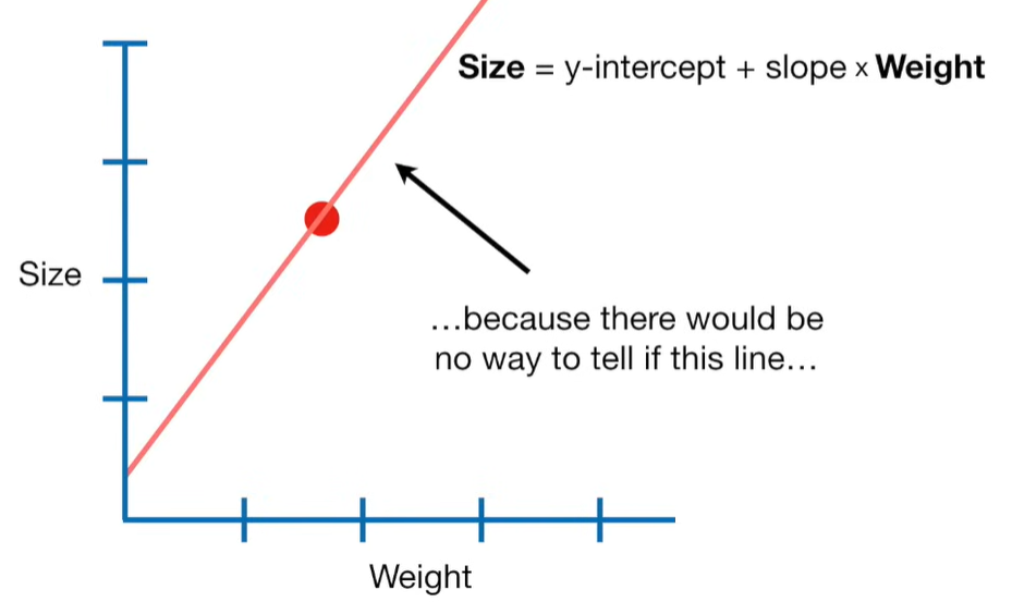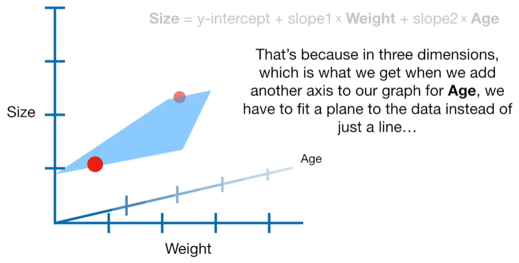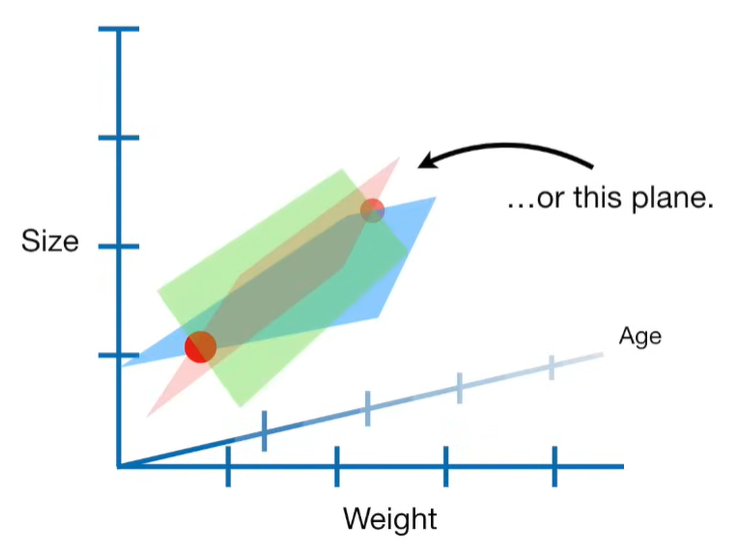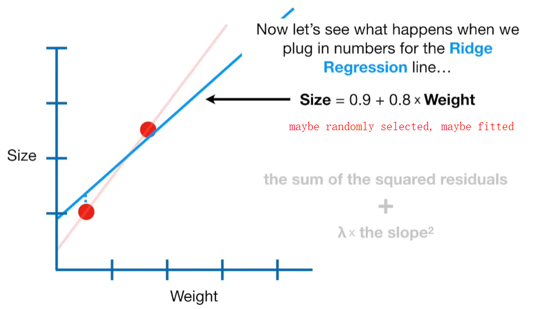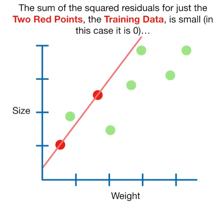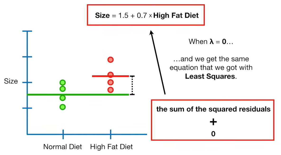 A lot of people ask about 15:34 and how we are supposed to do Cross Validation with only one data point. At this point I was just trying to keep the example simple and if, in practice, you don't have enough data for cross validation then you can't fit a line with ridge regression. However, much more common is that you might have 500 variables but only 400 observations - in this case you have enough data for cross validation and can fit a line with Ridge Regression, but since there are more variables than observations, you can't do ordinary least squares.