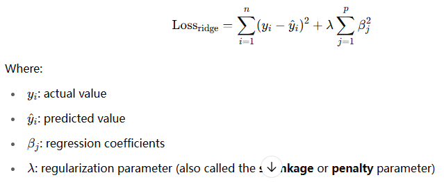 Ridge Regression Loss Function: