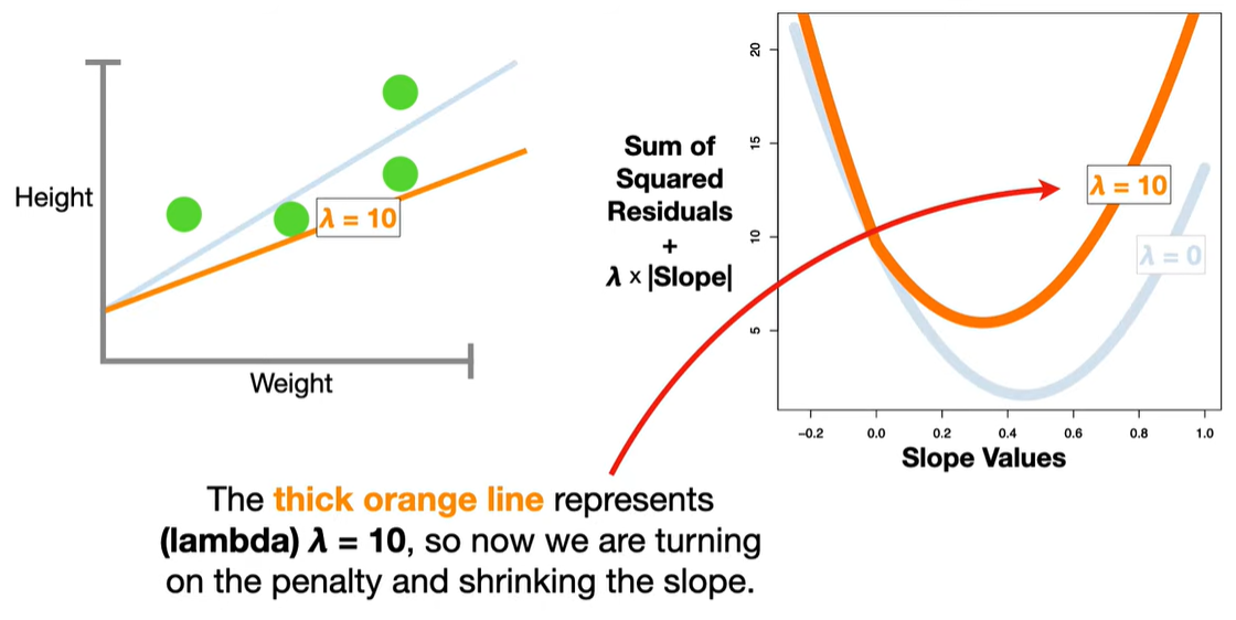 LASSO modifies this by adding a penalty term based on the L1 norm (sum of absolute values of the coefficients):