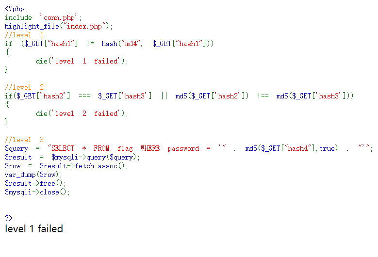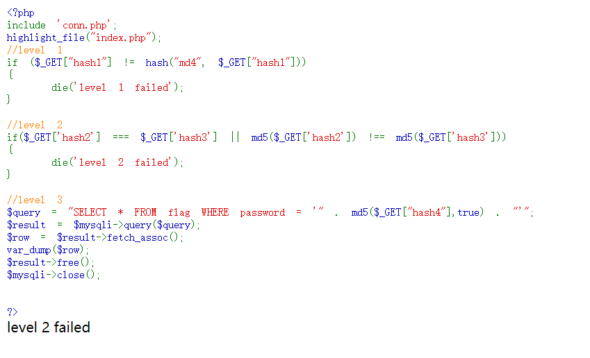 die('level 2 failed');