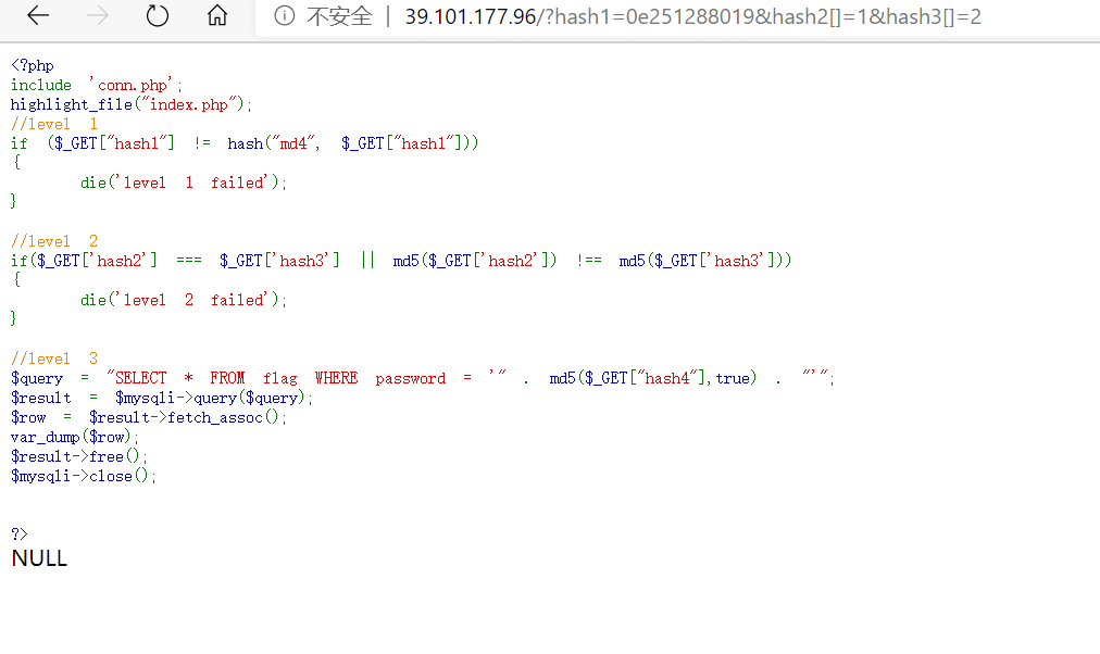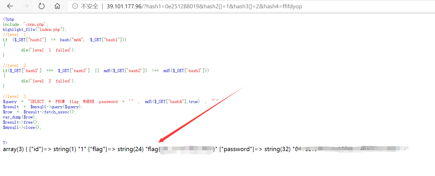 那么目的就明确了 md5($_GET["hash4"],true) 这里要为 true