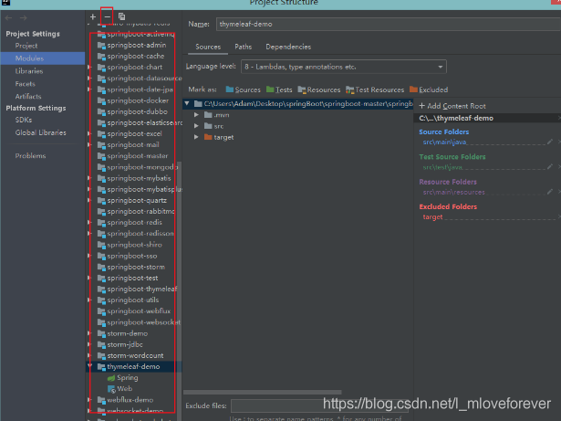 二、点击Project Settings中的Moudles—>点击减号将所有的Moudle删除