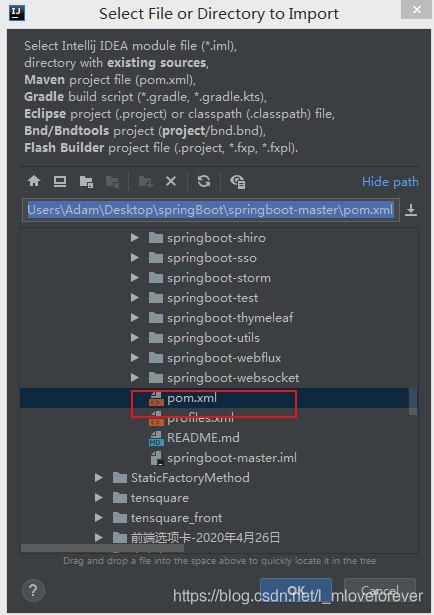 四、找到项目的父文件夹中的pom文件—>OK