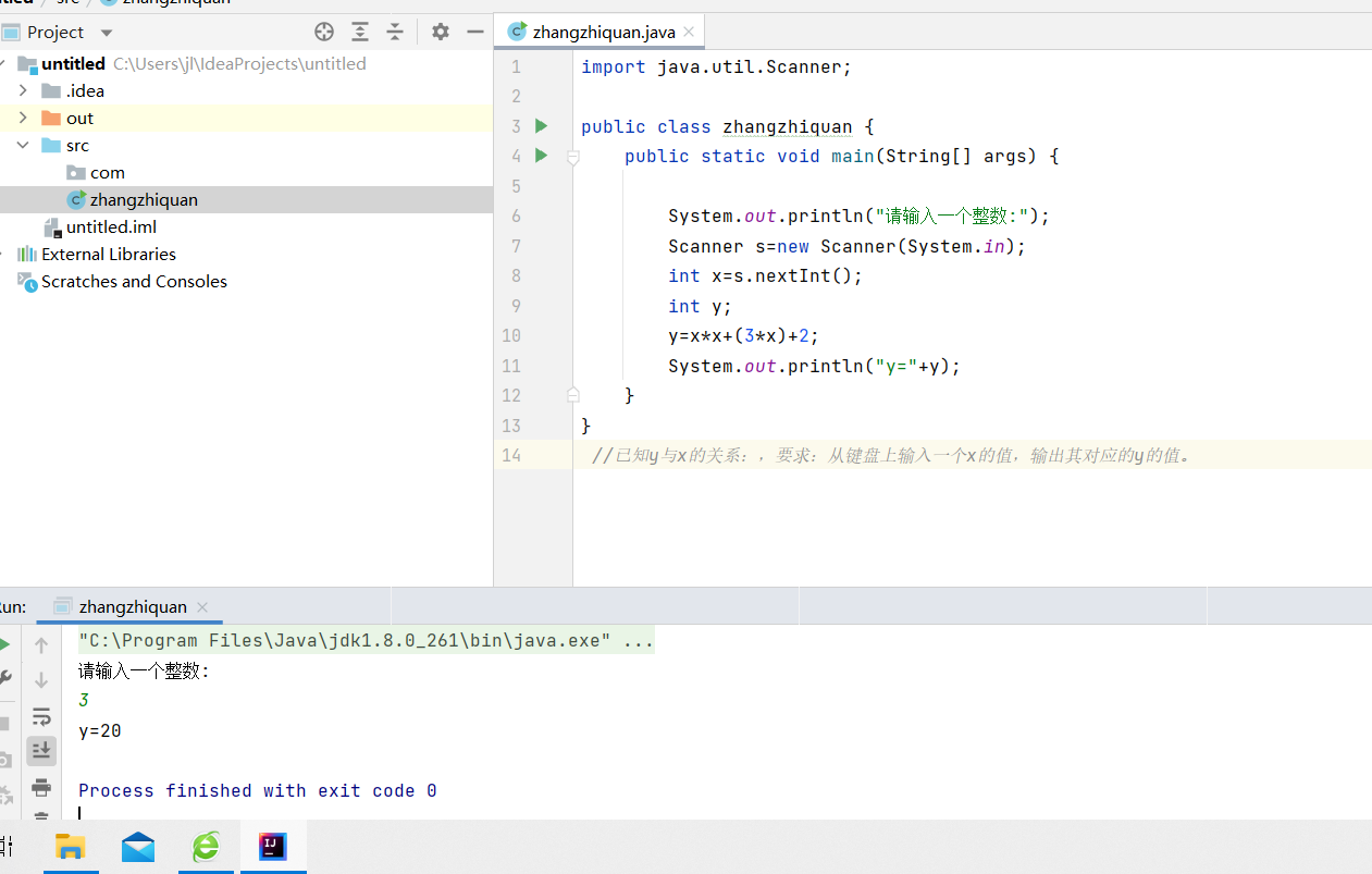 System.out.println("y="+y);