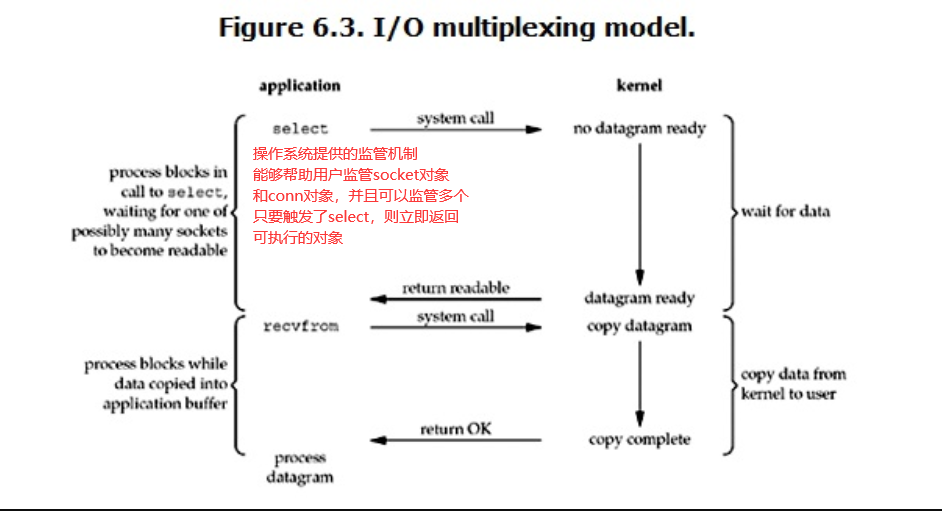 3.多路复用IO的监管机制是操作系统本身就有的,如果你想要使用该监管机制(select)