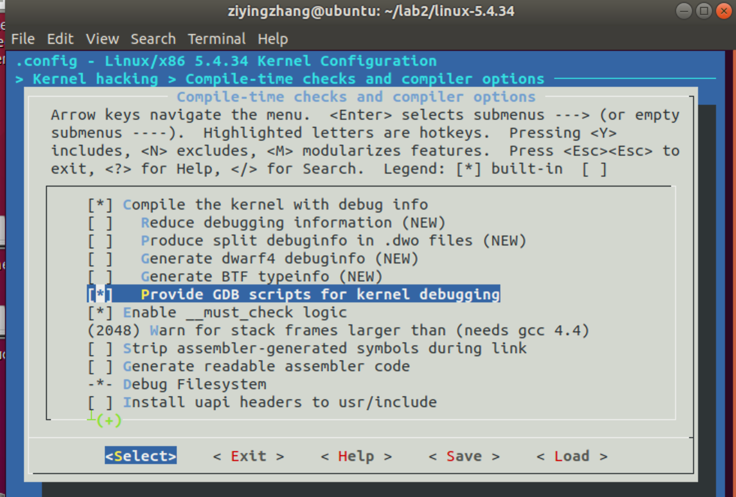 首先选择Kernel hacking 然后选择 Compile-time checks and compiler options ,勾选其中的三个选项