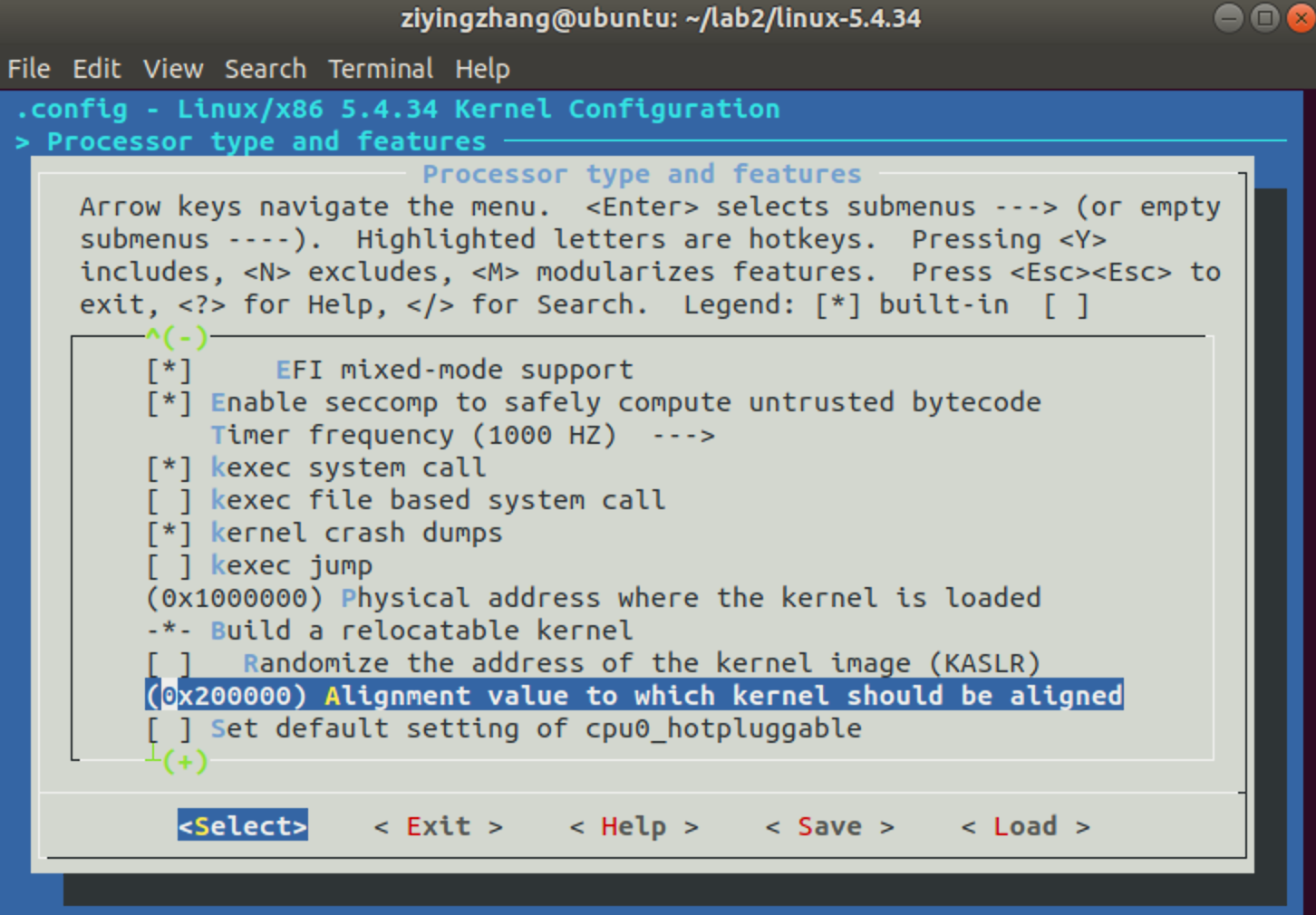 然后返回一级菜单,选择 Processor type and features 去除 Randomize the address of the kernel image (KASLR) 选项。