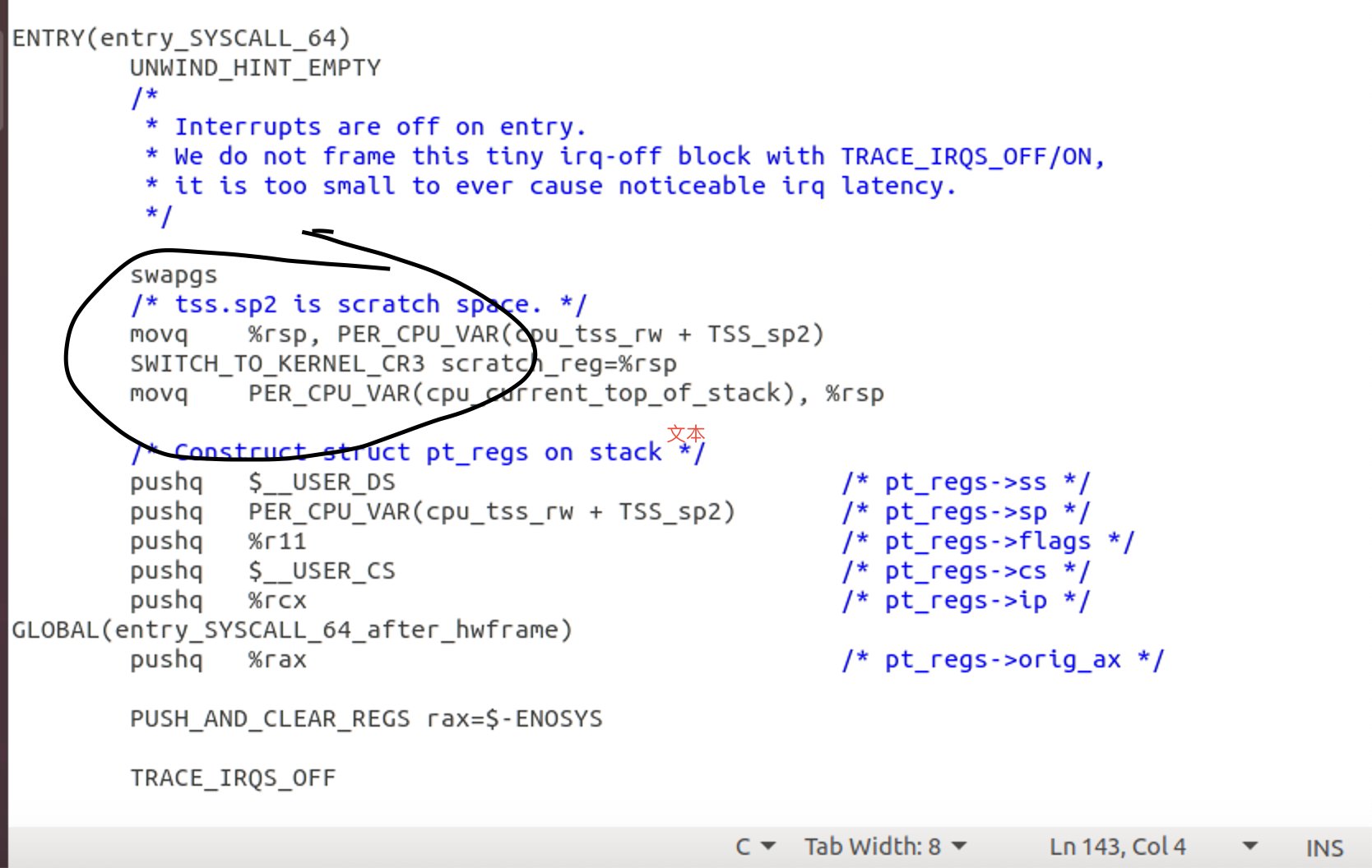 用户态程序触发系统调用;然后系统进入内核态,完成内核初始化后,调用entry_SYSCALL_64 ()。通过 swapgs 指令保存现场
