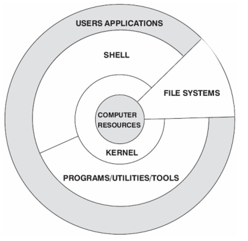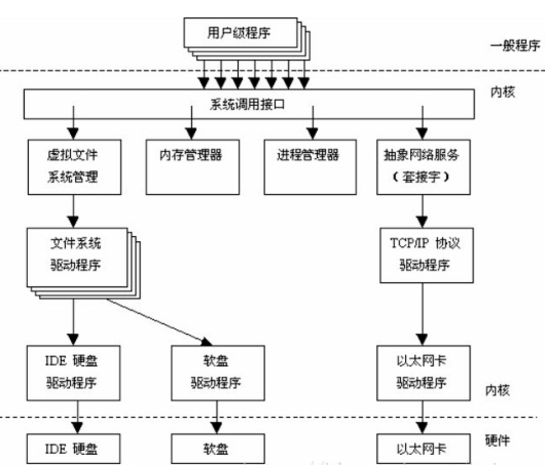 内核、shell、文件系统和应用程序。内核、shell和文件系统一起形成了基本的操作系统结构,它们使得用户可以运行程序、管理文件并使用系统。部分层次结构如图1-1所示。