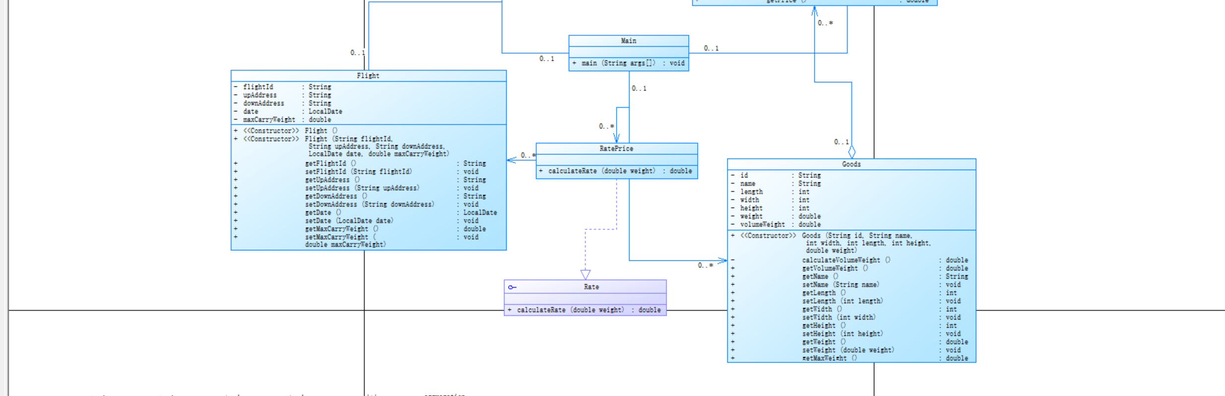 此外第二次习题还对不同货物的费率有不同的计算方式,故而我将费率分为三个不同的费率来继承Rate接口实现费率计算的多态(具体代码如下)