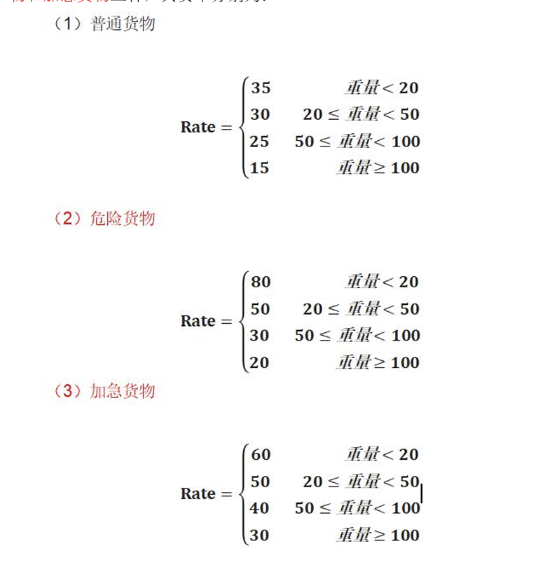 题目要求:某航空公司“航空货运管理系统”中的空运费的计算涉及多个因素,通常包