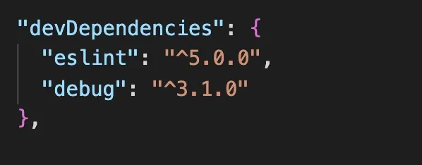 devDependencies 是指可以在开发环境使用的依赖,例如 eslint,debug 等,通过 npm install packageName --save-dev 下载的包都会在 devDependencies 对象中;