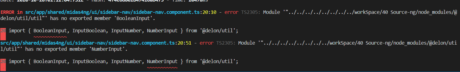 error TS2305/@delon/util/util"' has no exported member 'BooleanInput'.