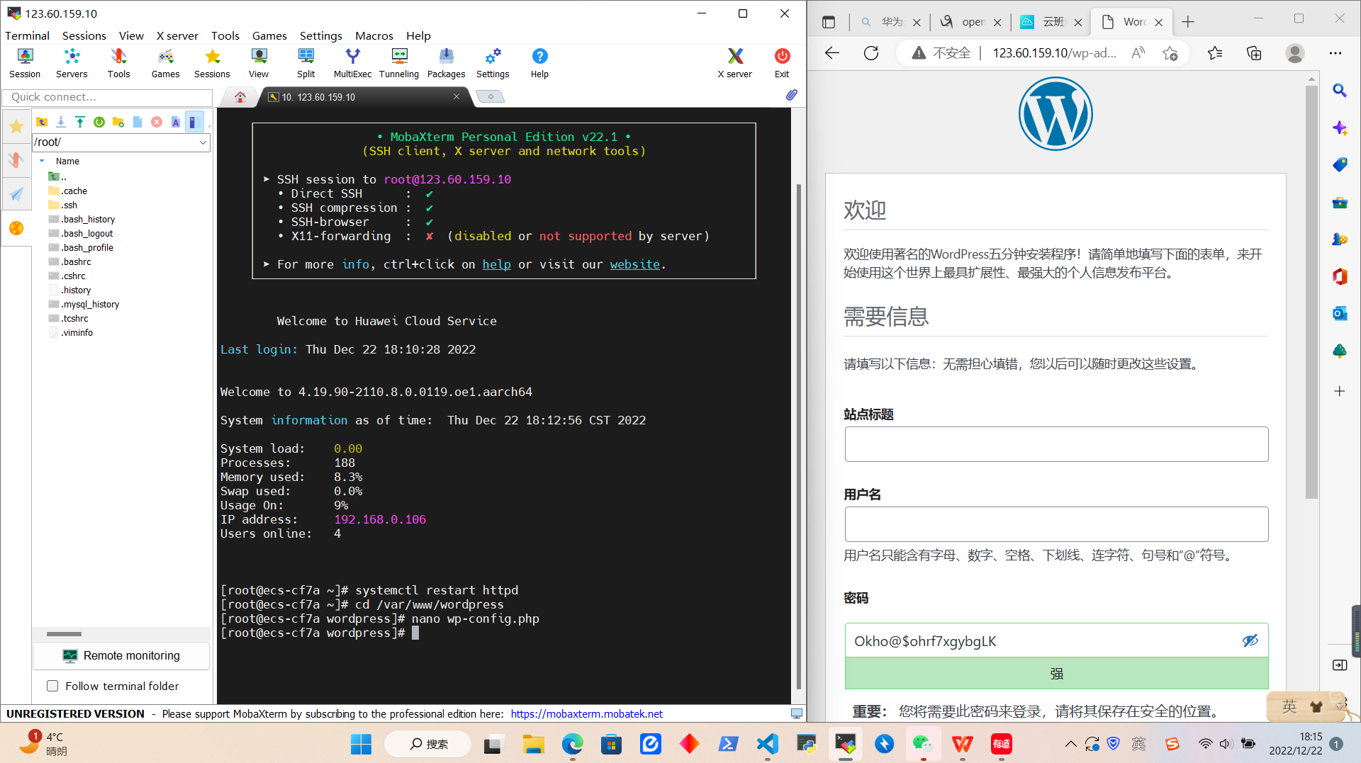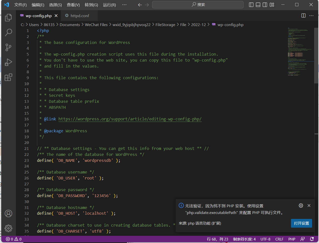 之后在访问ip/wp-config.php时出现问题,并向老师请教。