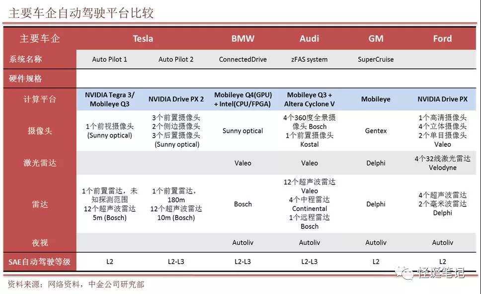 (Nvidia 的芯片还被用于负责车载娱乐和处理车辆摄像头图像上,比如,奥迪新A8采用的自动驾驶平台zFAS中使用了Nvidia TegraK1芯片,负责处理车辆的环视影像;但zFAS负责实现自动驾驶功能的芯片是Mobileye Q3和Altera的Cyclone V。)