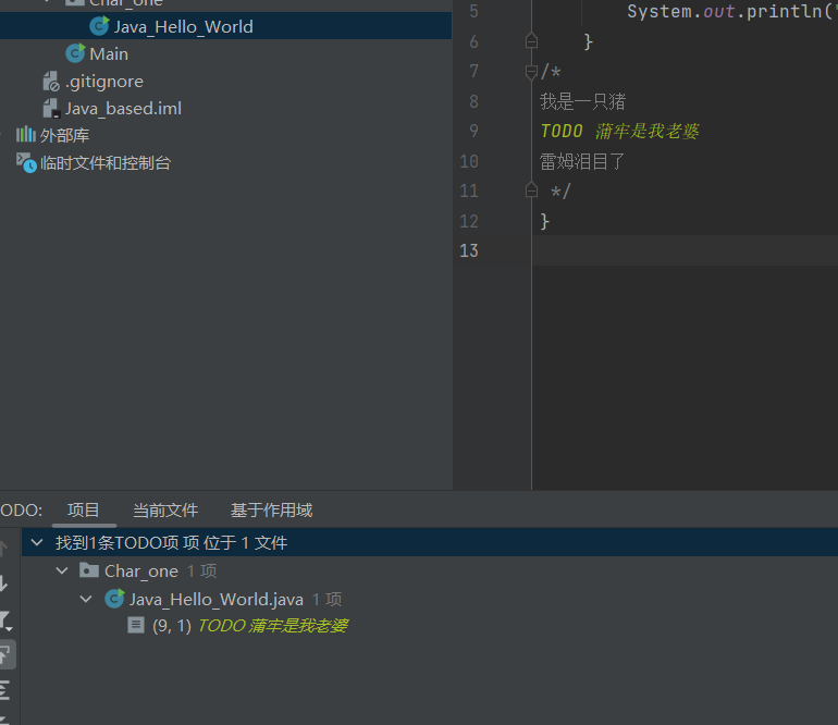 idea软件小技巧:多行注释往往容易找不到重点,可以在要做的事之前加上TODO前缀,idea软件会帮你高亮标注出来。