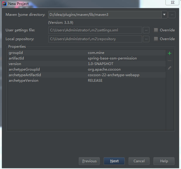 同时要在resources目录下建立setttings.properties文件,内容写入以下,密码和数据库名根据自己的情况来写,同时也在mysql中建立数据库,我这里是 spring-base-ssm-permission