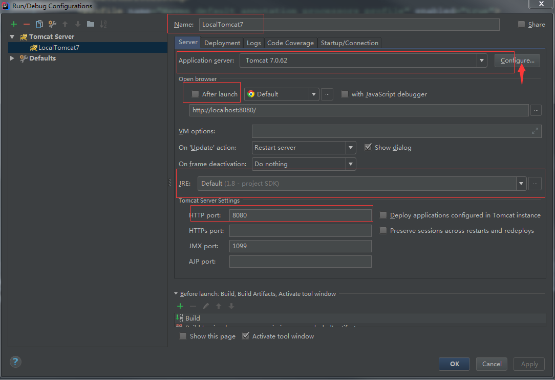 首先是tomcat配置,我这里是配置本地的tomcat7