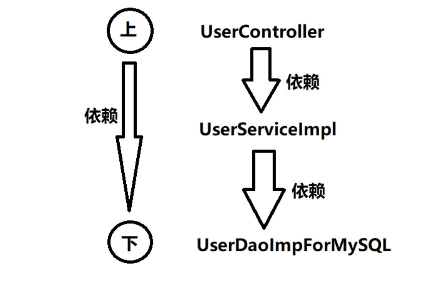 没有ioc的程序,我们使用面向对象编程,对象的创建与对象之间的依赖关系完全硬编码在程序中