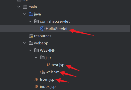 - 编写Hello.jsp,在WEB-INF目录下新建一个jsp的文件夹,新建hello.jsp
