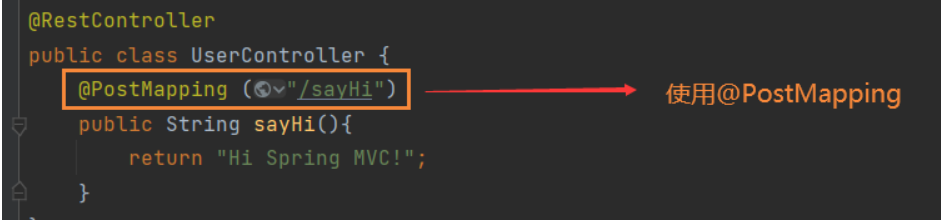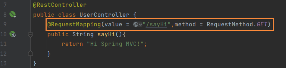 - 2.在类中定义方法,方法上面加入@RequestMapping注解方式处理请求,相当于servlet得doGet,doPost