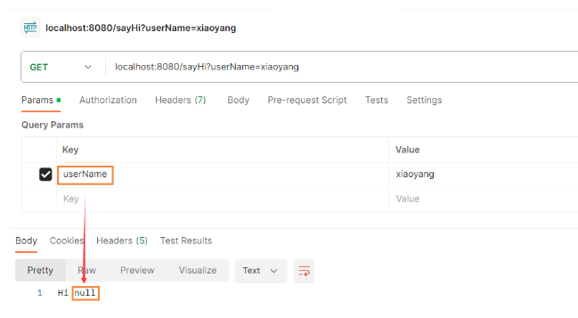1)代码中声明的参数名与请求地址栏中的参数名要完全一致,若不一致则无法获取到地址栏中对应的参数值,会为参数的默认值。