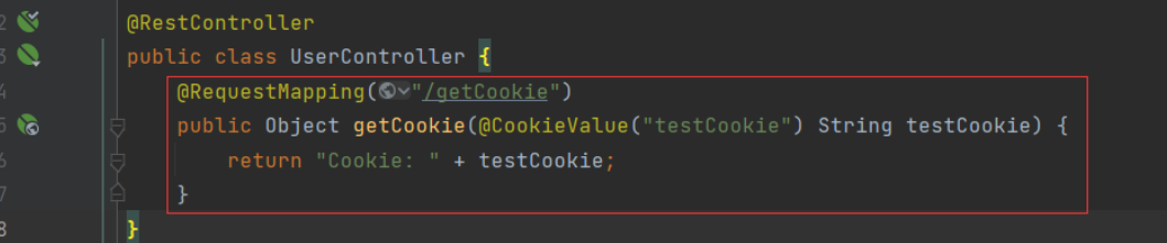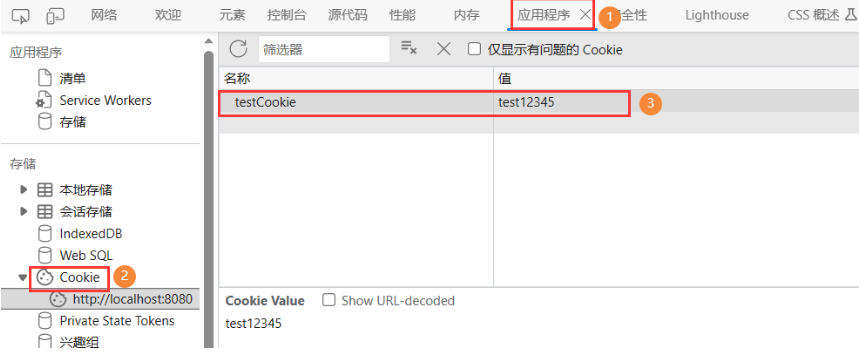 1)使用@CookieValue 注解进行获取Cookie的操作,该注解里的参数的参数名要与Cookie列表里面的Cookie名要一致。