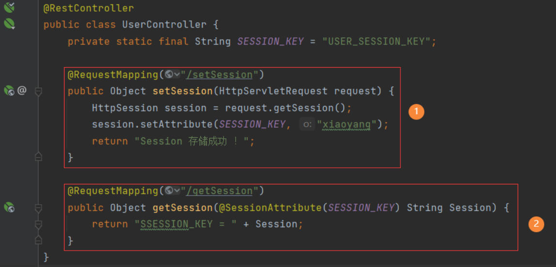 - 2)存储Session操作没有与之对应的注解,只有获取Session操作才有对应的注解@SessionAttribute 进行简便获取。
