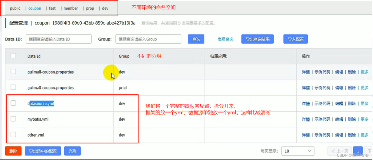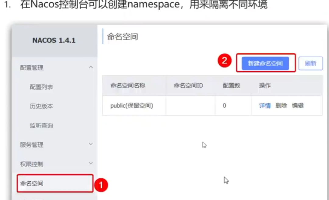 Nacos中服务存储和数据存储的最外层都是一个名为namespace的东西,用来做最外层隔离