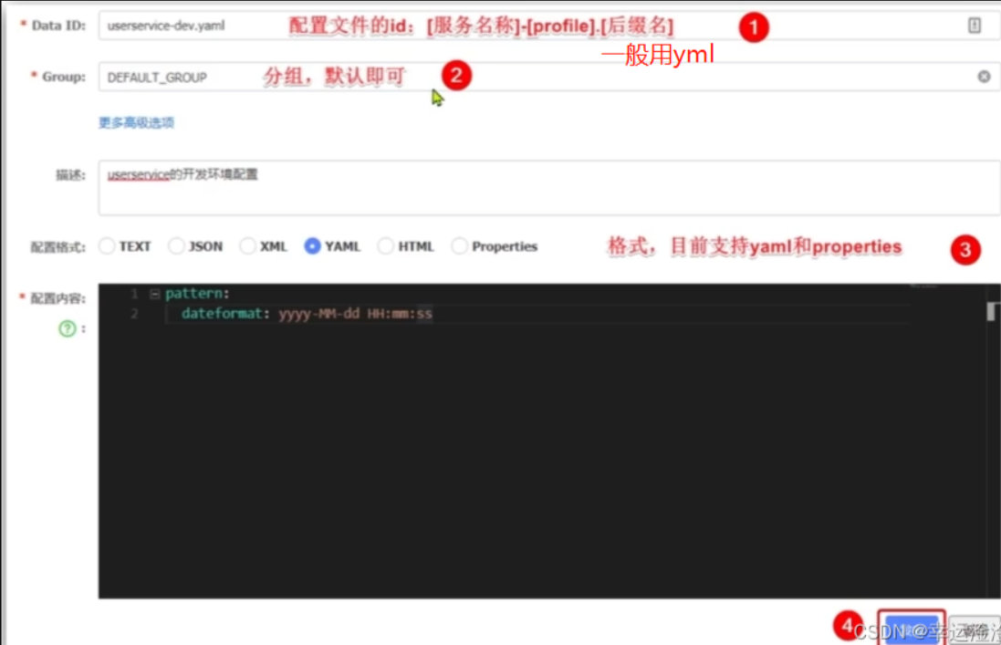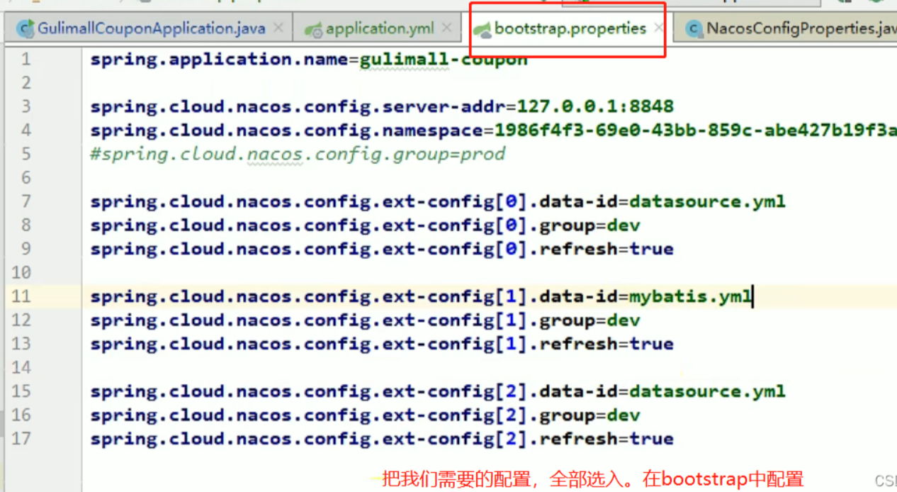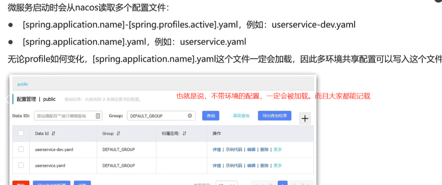 注: Nacos配置文件中的内容不是随便写的,不是把项目中的yml配置文件拉进去就可以了,我们只写一些通用的、需要热更新的内容。