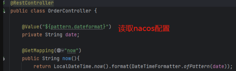 输出的日期与nacos配置当中一直,这就 说明我们确实获取到了nacos中的配置